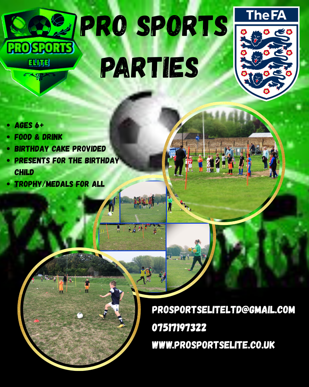 We Provide your parties to tailor your needs we provide food and Birthday cakes to suit you or we can just provide a football party your child will not forget. contact us today for pricing.
